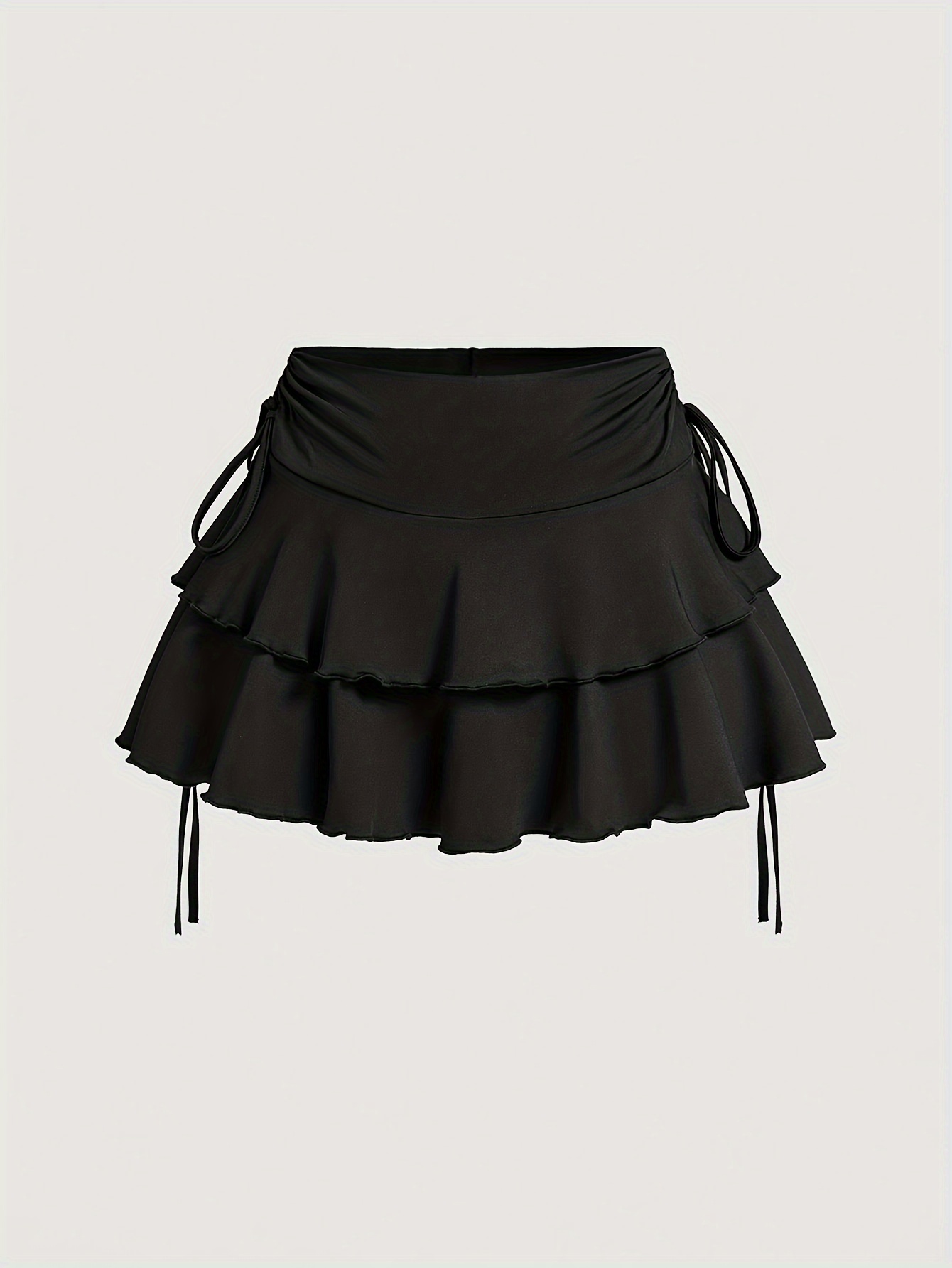 [Casual Off-Shoulder Top] Off-Shoulder Trumpet Sleeve Women's Casual Top with Ruffle Hem Skirt Set