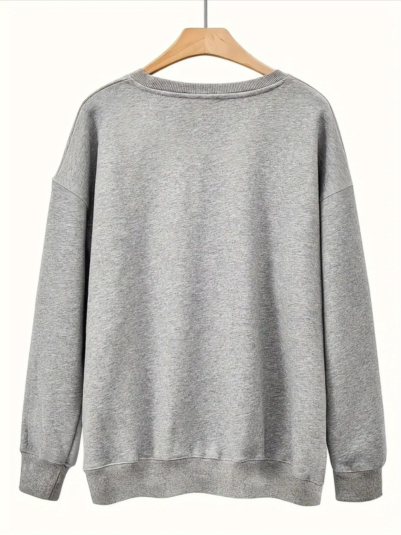[Christmas Misfit Sweatshirt] Christmas "A Bit of a Misfit" Printed Sweatshirt - Long Sleeve, Knit Polyester, Plus Size - Casual Crew Neck, Applique Detail, Machine Washable