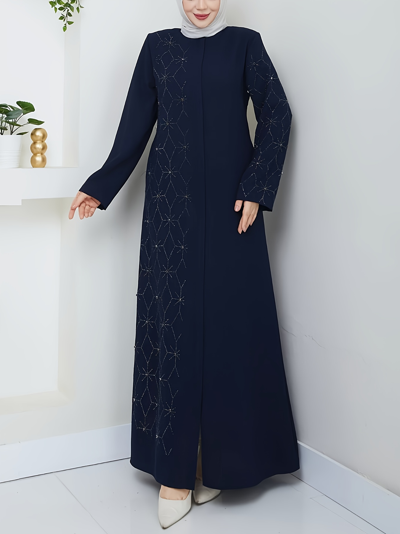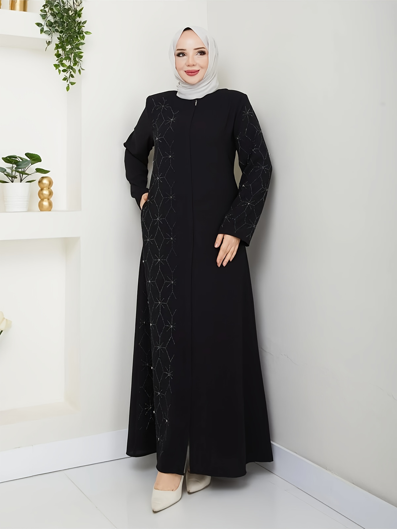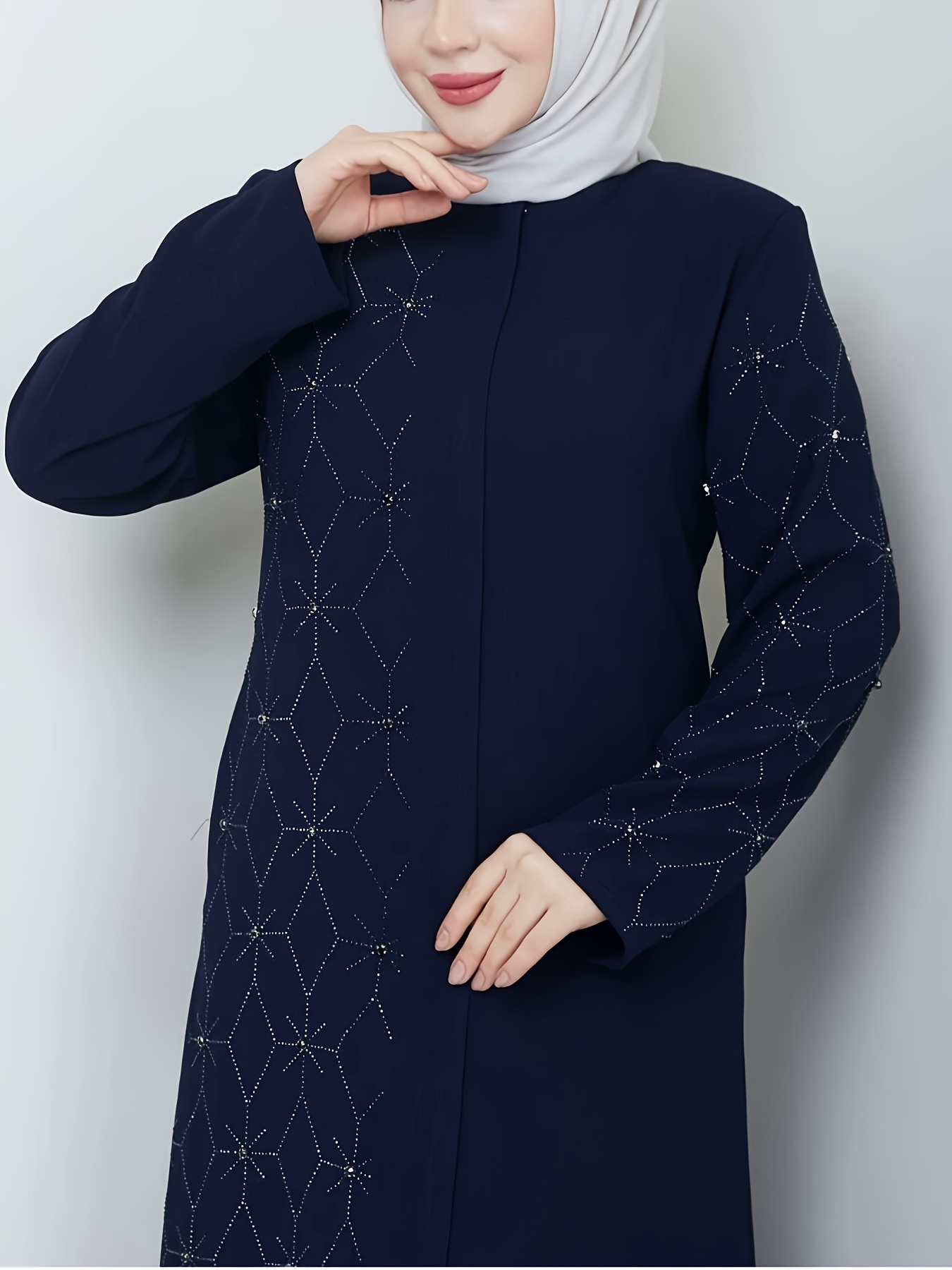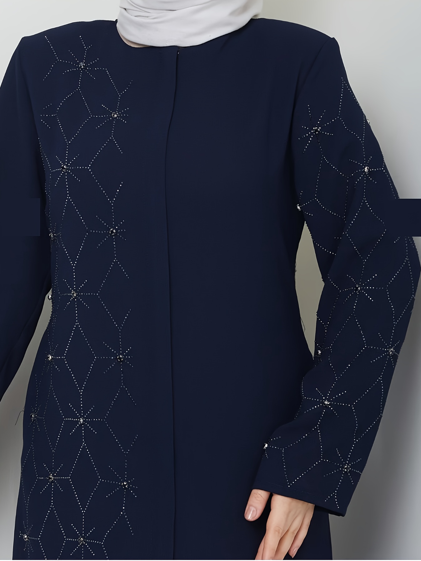 Middle Eastern Muslim Solid Color Elegant Rhinestone Abaya 8325