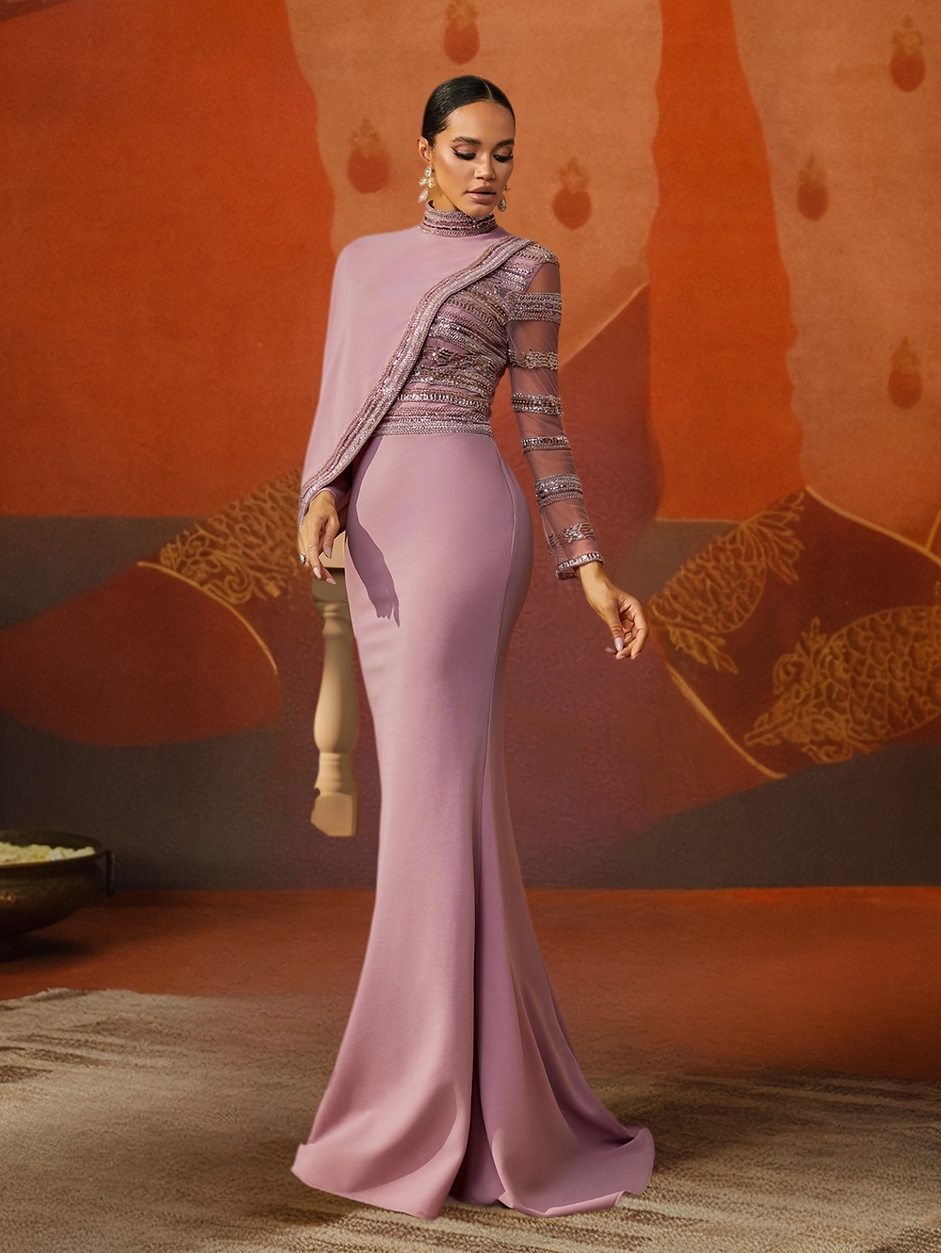 Women's Elegant Formal Evening gown - Long Formal Party Dress in Lavender Pink, A-Line Silhouette with flared Hem, Perfect for Weddings, Galas, Proms - Luxury Evening Wear for Women