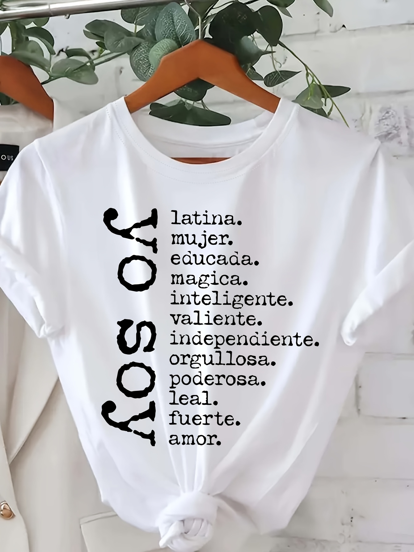 Women's Empowerment Spanish Letter Print T-Shirt - Short Sleeve Crew Neck Casual Top with Bold "Soy" Affirmations, White & Black Graphic Design, Machine Washable Regular Fit for Spring & Summer, Casual Attire, Feminine Style, Durable Material