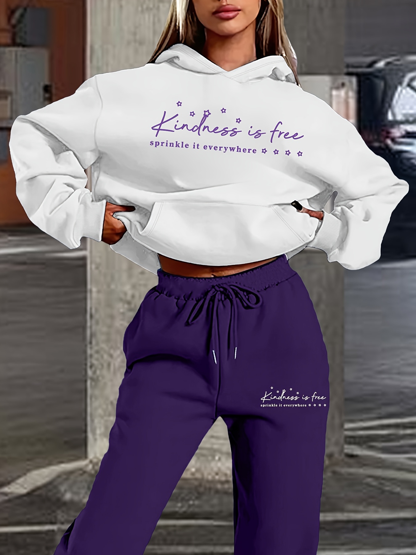 Women's Fashion Casual Letter Print Set - Premium Autumn/Winter Trendy Youthful Fleece Hoodie and Jogger Pants Two-Piece Outfit, Versatile Hooded Suit for Women, Ideal Gift Choice