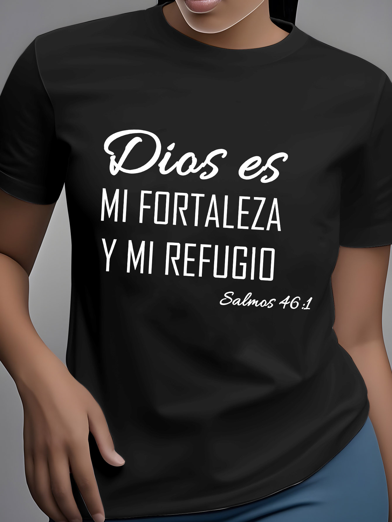 Women'S Black T-Shirt with Inspirational Biblical Verse "Dios es mi fortaleza y mi refugio" - Casual Summer Top for Girlfriends and Friends, Lightweight & Comfortable, Casual Summer Top|Relaxed Fit Tee|Comfortable Fit, Ladies T Shirts