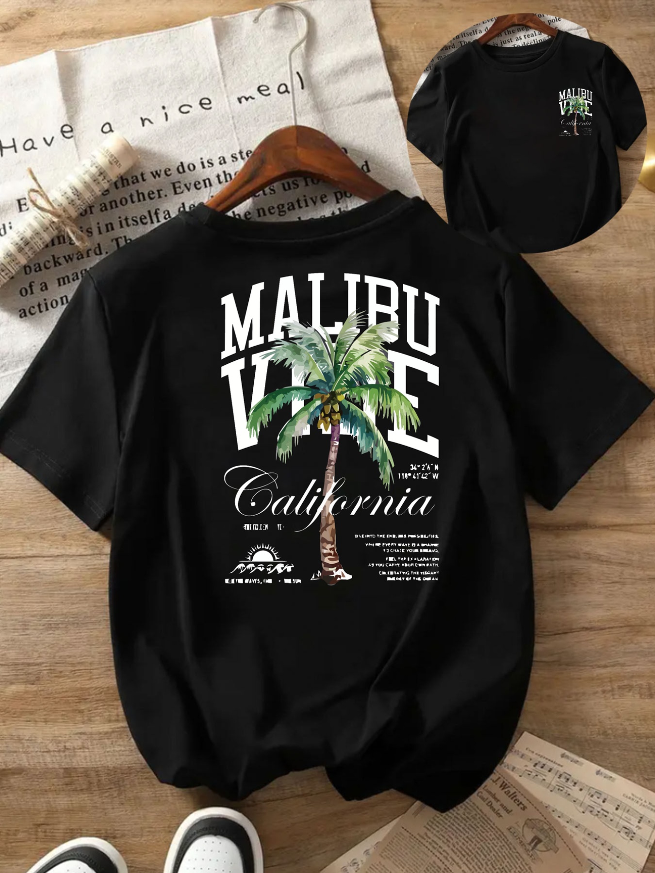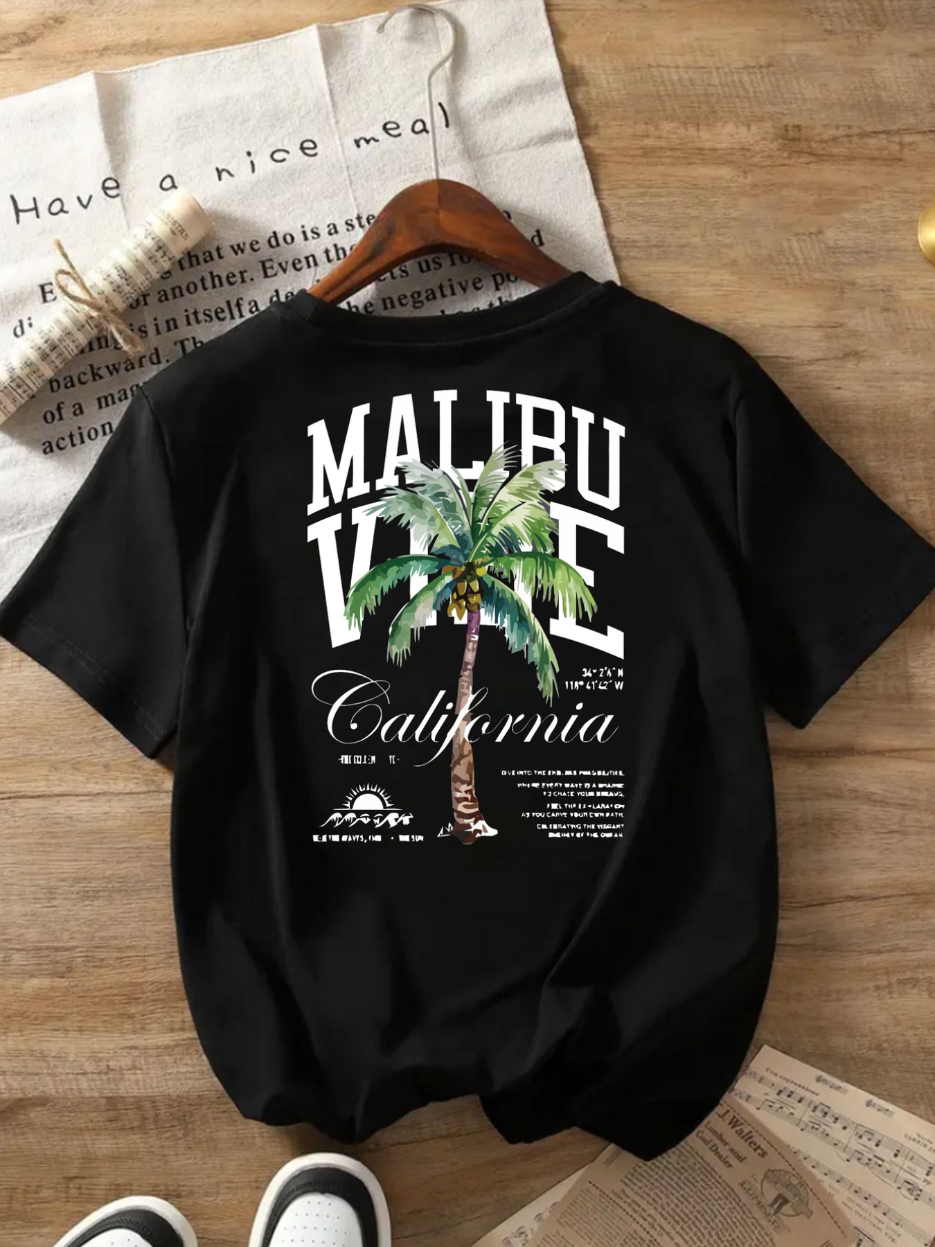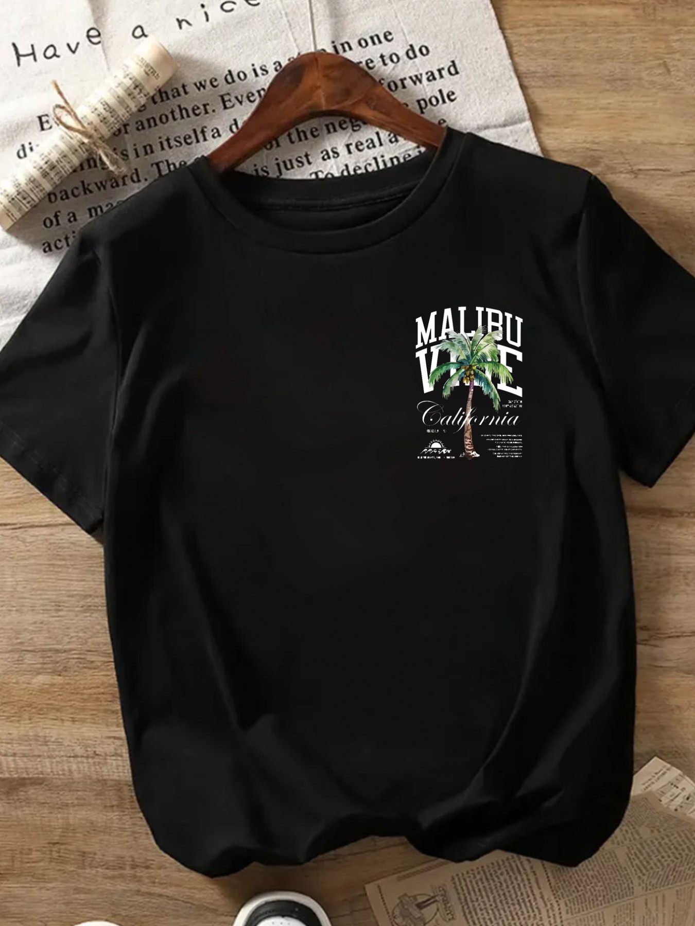 MALIBU VIBE Women's Casual Short Sleeve T-Shirt - Tropical Palm Tree & California Graphic Print, Black with White Lettering, Round Neck, Comfort Fit, Machine Washable, All-Season Wear, Relaxed Fit Top | Classic Round Neck | Durable Print Shirt